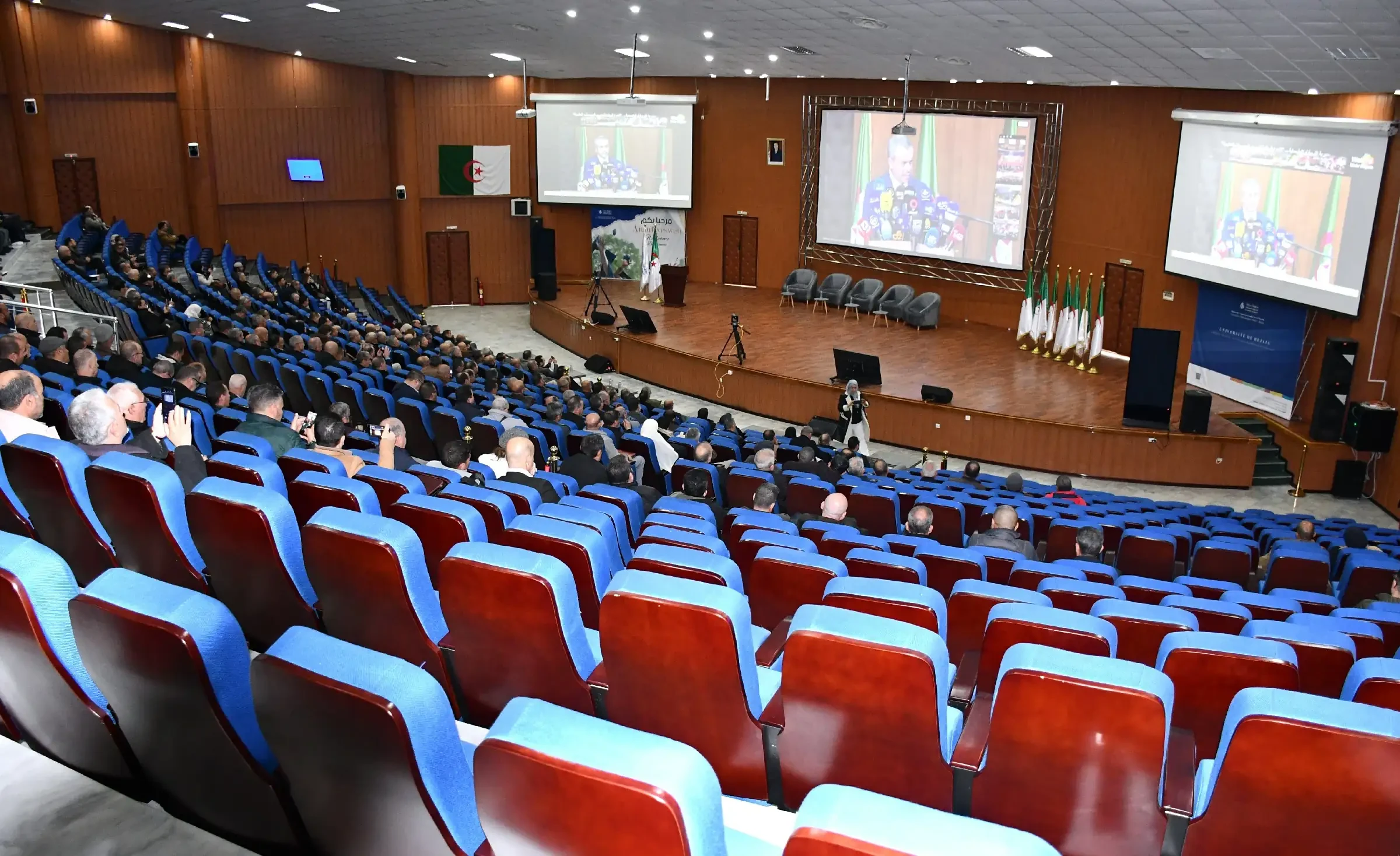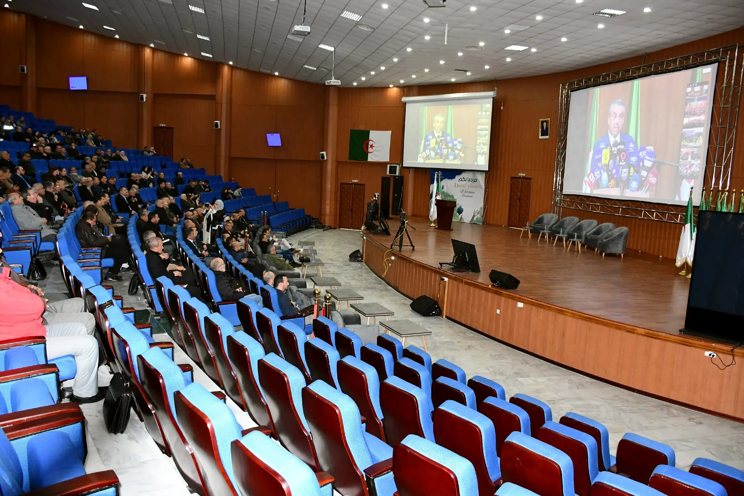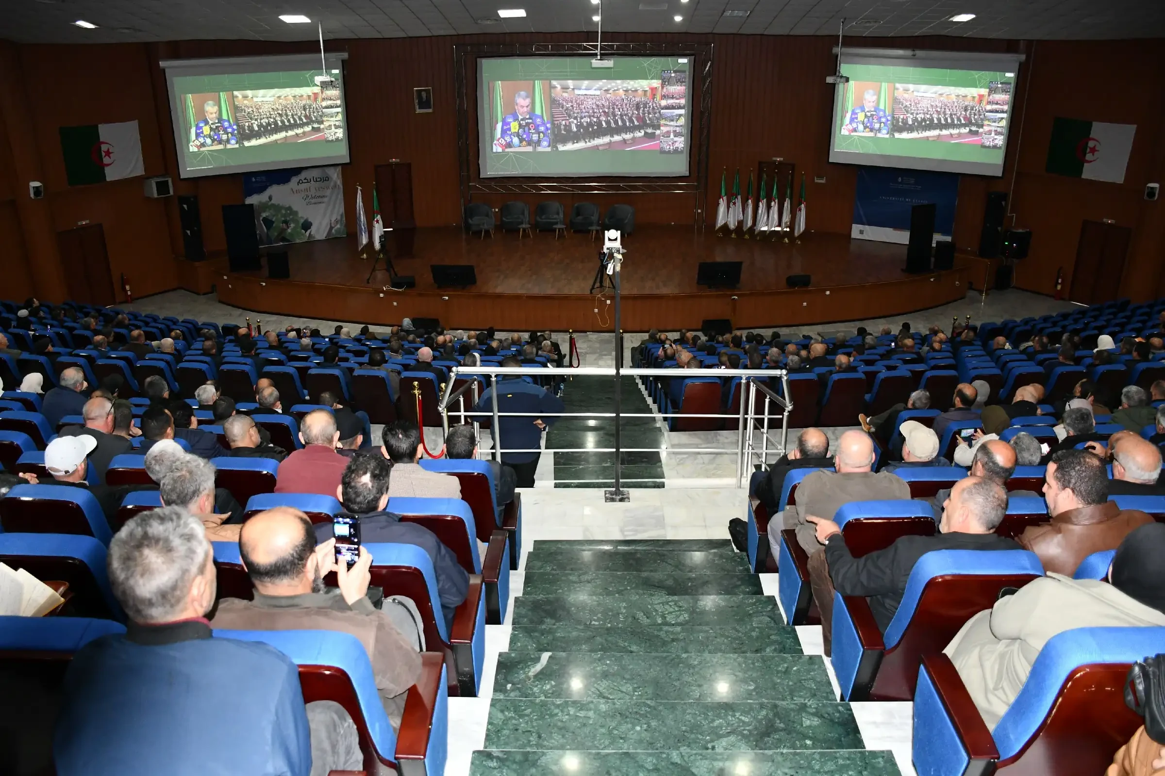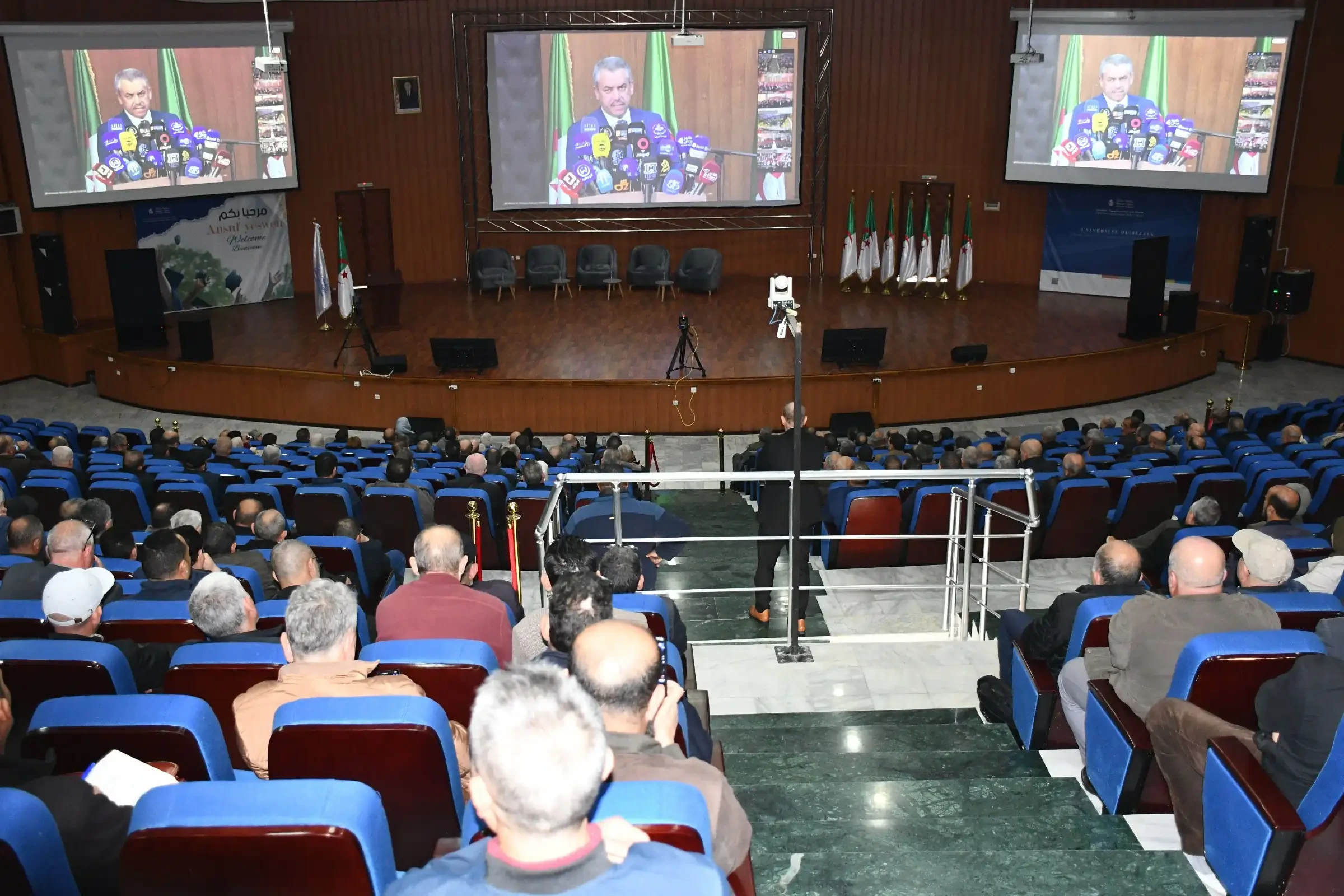 عدسات المصورين في قاعة البث بكلية الطب بوهران نقلت منذ الوهلة الأولى صورة دقيقة عن الجاهزية التقنية العالية، حيث تم تجهيز الفضاء بأحدث الوسائل السمعية البصرية، من شاشات عملاقة وكاميرات احترافية، إلى جانب فريق تقني متخصص سهر على ضمان جودة البث المباشر. في المقابل، أظهرت الصور القادمة من مدرج سعيداني بوعلام حضورًا كثيفًا لمديري المؤسسات التعليمية ببجاية، الذين جلسوا في صفوف منظمة يتابعون فعاليات المؤتمر بانتباه كبير