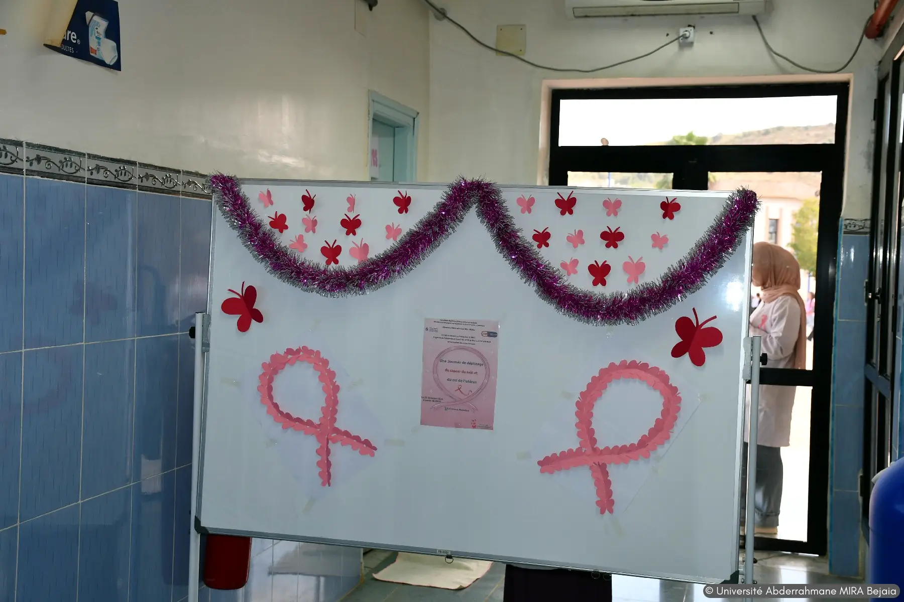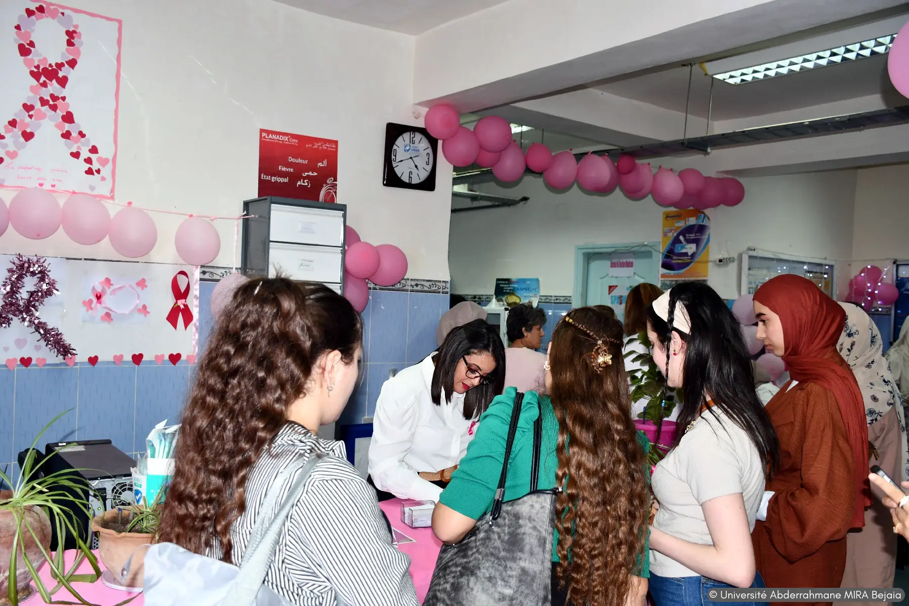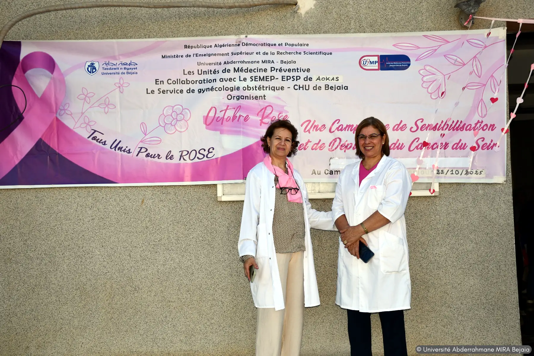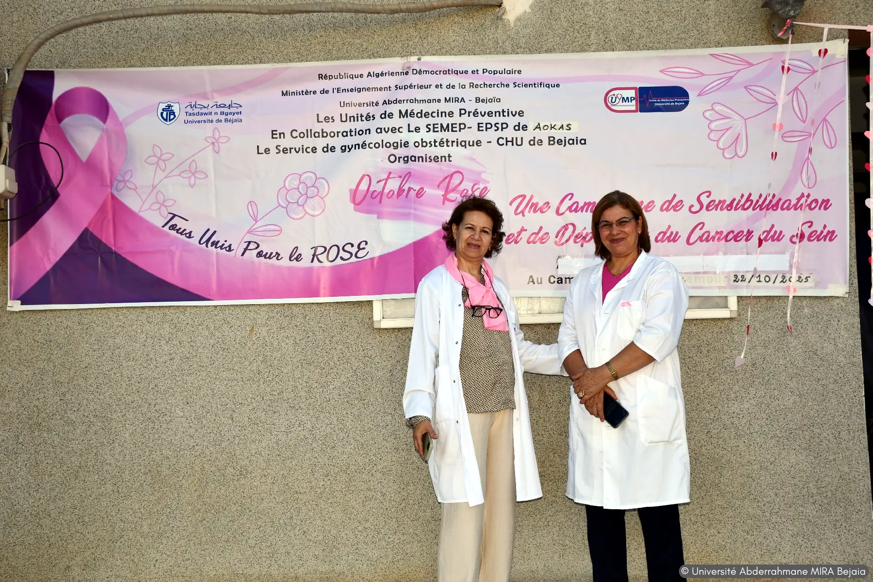 journée de dépistage du cancer du col de l’utérus et du cancer du sein, pour la communauté féminine de l’université de Bejaia, organisé par l’unité de médecine préventive de l’université en collaboration avec le service de gynécologie du CHU de Bejaia, de EPSP d’AOKAS et de Bejaia, ainsi que l’association des sages femmes de la wilaya de Bejaia, et des œuvres sociales de l’université Abderrahmane MIRA de Béjaia.
